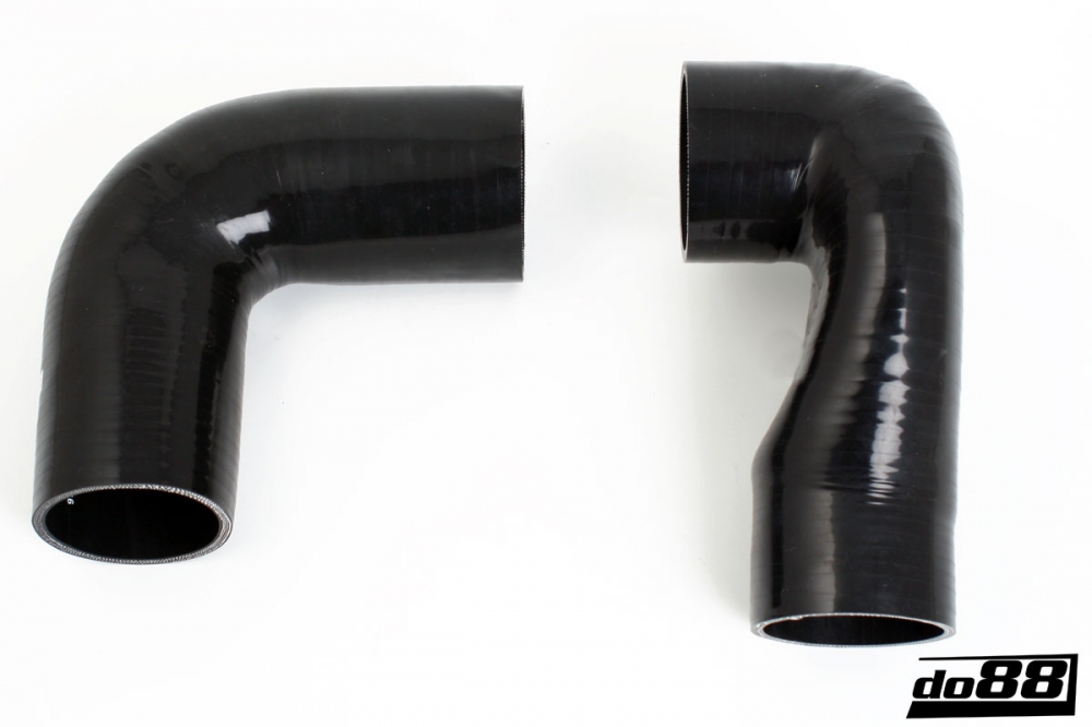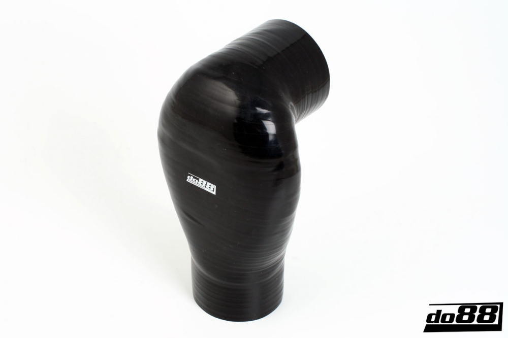 A custom design hose by do88, made to make it possible to deliver a great air flow when the space are so limited that a regular 90° hose takes to much space. In very tight places the narrow radius comes in handy and our special design of this hose deliver great in terms of airflow. Have a look at the pictures with drawings that shows the narrow design of this hose!