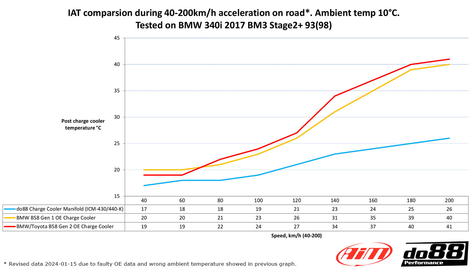Owners of tuned B58 engines often confront the issue of rapid heat soak in the charge air cooling system, particularly when the vehicle is used for track days. Elevated intake air temperatures may prompt the ECU to decrease the power output, or even switch the car into limp-home mode. Regular spirited street driving can also cause similar issues.