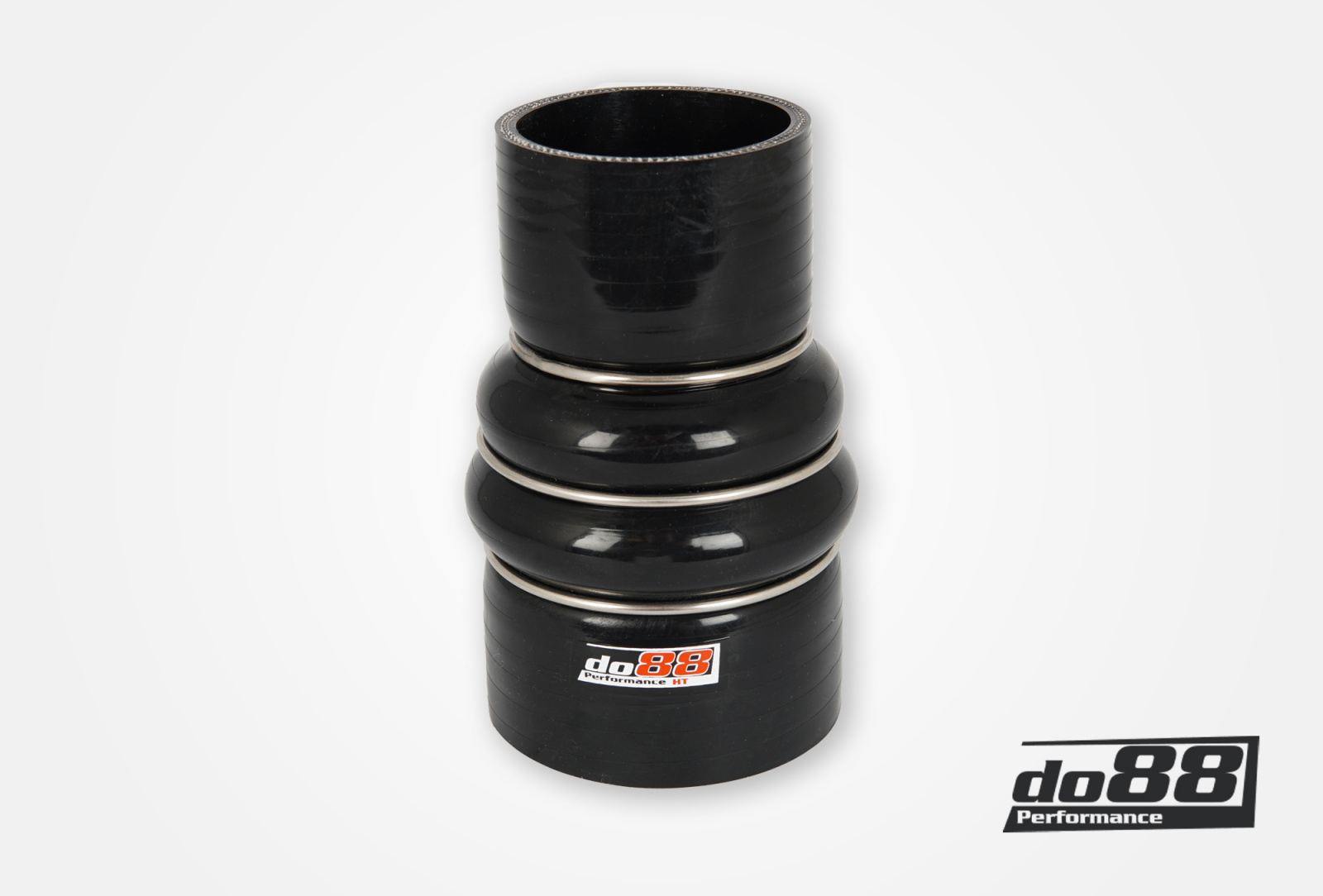 But we've taken a different approach at do88. For us it was clear the system needs a flexible connection in-between the two pipes which can handle the thermal expansion / contractions. Our solution is an aramid reinforced silicone hose with 3-humps. This hose design allow movement in any direction without folding or putting the connections at stress. To further strengthen our design the pipes have CNC-machined 6063 hose connection ends with 3mm wall thickness. These hose connections won’t deform even for overtightened hose clamps.