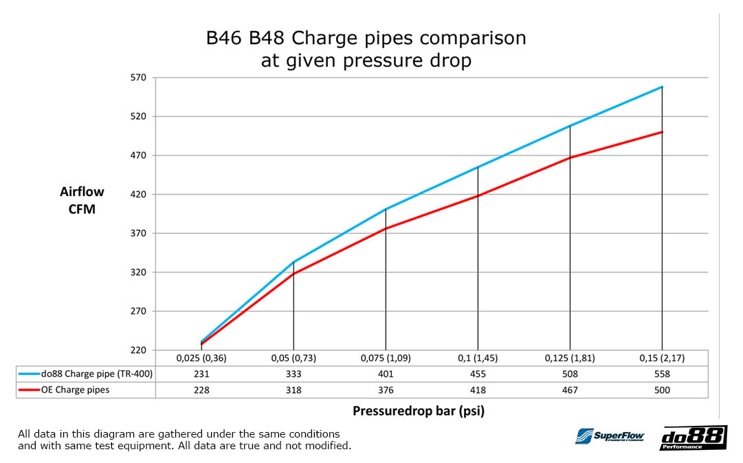 - 12 % more flow than OEM, with 558 CFM @ 150mbar (2.17psi) compared to the OEM 500 CFM.