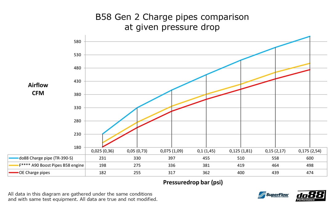 - 27 % more flow than OEM, with 558 CFM @ 150mbar (2.17psi) compared to the OEM 439 CFM.