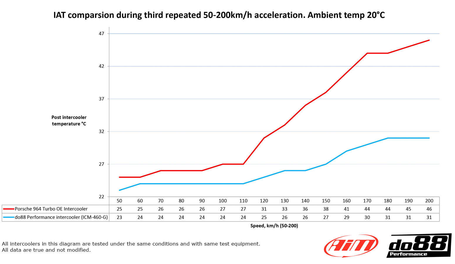- Post intercooler air temperature at same conditions: 31°C (46°C), do88 15°C lower!
