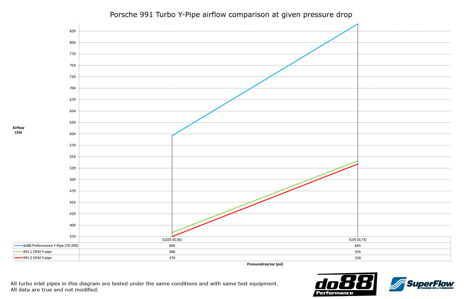 When it comes to air flow performance our Y-pipe totally outperform the OEM Y-pipe by 58% increased flow at the same pressure drop!
