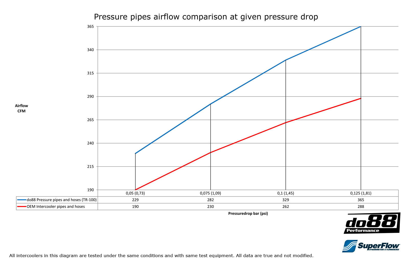 - Air flow at 0,125bar/1,81psi pressure drop: 379CFM (288CFM), do88 32% higher!