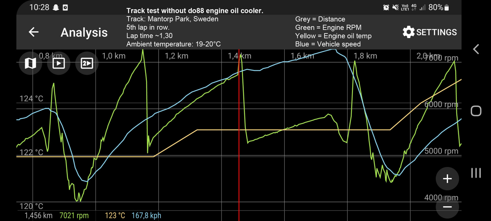 The do88 Yaris GR performance upgrade oil cooler kit is designed to maintain a healthy engine oil temperature even during heavy load such as track use. This is really needed as oil temperatures too high might harm the engine and during track use the oil temperature will be too high and just keep on rising. In the same scenario with do88 racing oil cooler installed the temperature will be significally lower and more stabilized. During our tests the do88 racing oil cooler lowered the engine oil temperature about 20°C!