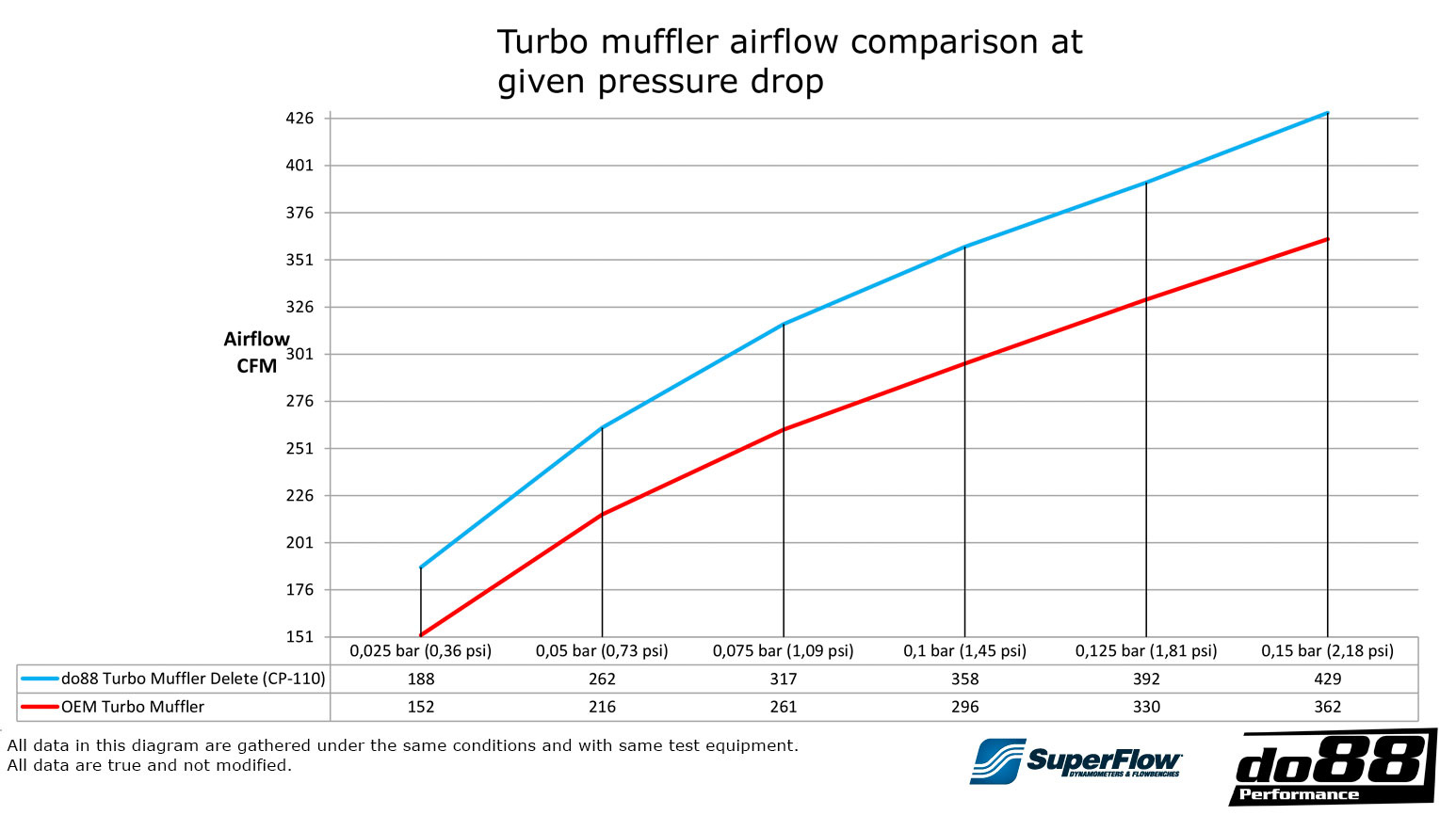- Air flow at 75 mbar/1,09psi pressure drop, 317 CFM (261 CFM), do88 21 % higher flow!